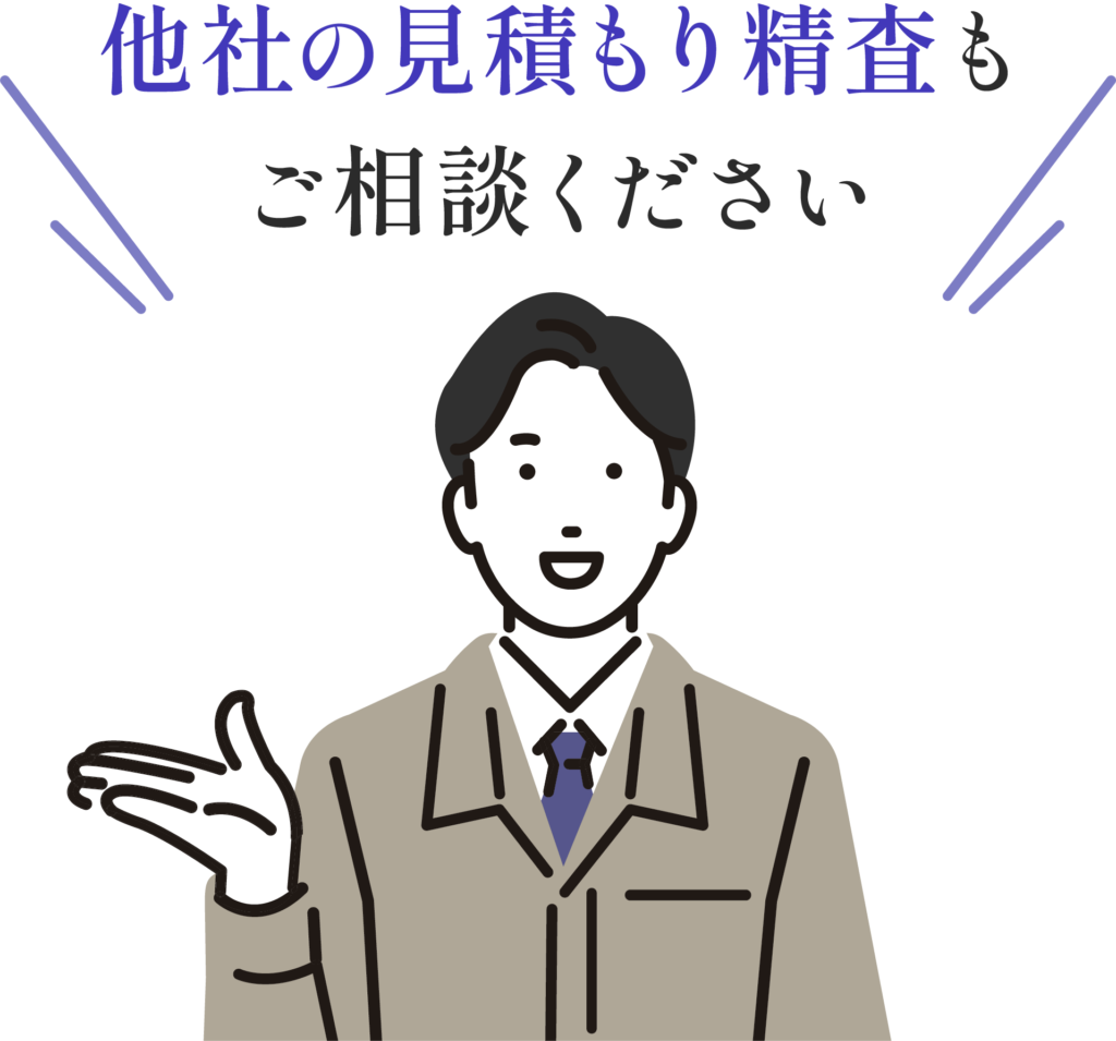 図面または現地確認にて、正確な費用を無料でお見積もりいたします。他社見積もりの精査もお気軽にご相談ください。