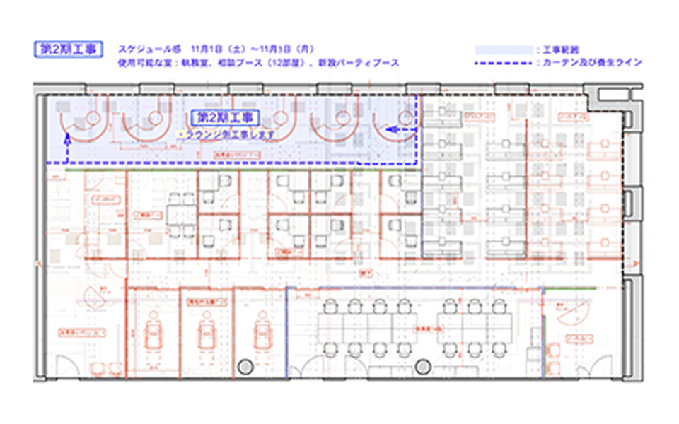 図面の内容や工事規模に合わせて、お店の営業を止めずに進められる工程計画をご提案しています。